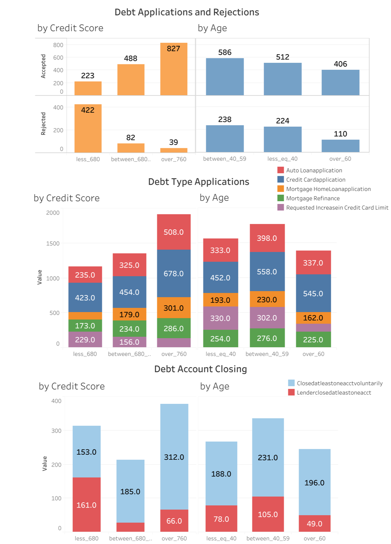 Applicants with credit scores above 760 experienced significantly higher approval rates across all debt