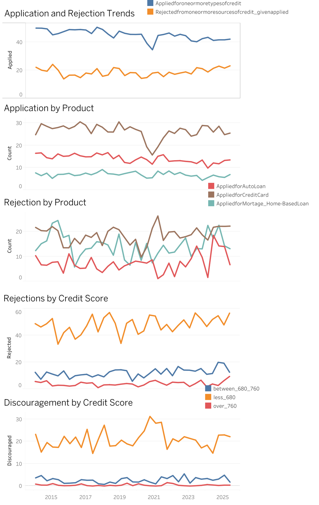 Credit access shapes household financial stability, but access is not evenly distributed. Following the COVID-19 period, concerns grew around rising rejection rates and discouraged borrowers.